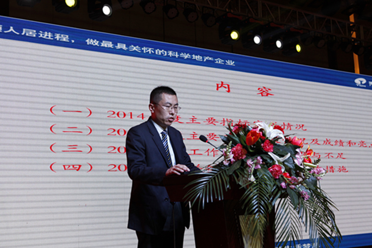 會議隆重表彰了2014年度在不同崗位上作出突出貢獻(xiàn)的先進(jìn)集體和個(gè)人。其中,開發(fā)部、銷售團(tuán)隊(duì)被授予績效鉆石組合獎,綜合辦公室被評為服務(wù)鉆石組合獎。公司總經(jīng)理助理錢永彩、華府項(xiàng)目部經(jīng)理姬常寶分別作為受表彰人員代表上臺發(fā)言。