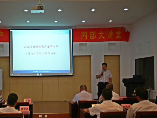 公司副總工程師徐總對(duì)檢查情況作了成績(jī)通報(bào),并著重表?yè)P(yáng)了進(jìn)步較大的天元905項(xiàng)目部(承建金泰華府1、2、3#樓)。