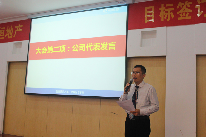 簽訂儀式結束后,公司副總經(jīng)理伏勝濤代表地產(chǎn)公司,物業(yè)公司副總經(jīng)理李晶晶代表各分子公司分別進行了發(fā)言及表態(tài),不僅僅是對目標和責任的承擔,更是信心和決心的傳遞,并承諾將圓滿完成2016年公司的各項經(jīng)營指標。