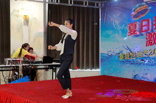 整潔優(yōu)雅的環(huán)境、整齊美觀的桌椅、動(dòng)感活潑的音樂、繽紛閃耀的燈光、精致可口的甜點(diǎn),使整個(gè)活動(dòng)現(xiàn)場熱鬧而不失穩(wěn)重,溫馨而不失活潑。伴隨著動(dòng)感的音樂,大家紛紛就坐,與周圍的同事熱情交談。上午10時(shí)30分,活動(dòng)準(zhǔn)時(shí)開始。泰盛恒地產(chǎn)總經(jīng)理黃總首先發(fā)表了開場致辭,隨后各部門開始表演精心準(zhǔn)備的節(jié)目。《擼起袖子加油干》、《我相信》等合唱唱出了氣勢,唱出了希望,《干了這杯酒》、《紅日》等獨(dú)唱唱出了個(gè)性,唱出了風(fēng)采。舞蹈及健身操等節(jié)目也相繼上演,展示了公司員工積極的精神風(fēng)貌。節(jié)目表演過程中還穿插了精彩的抽獎(jiǎng)環(huán)節(jié),引得現(xiàn)場陣陣歡呼。