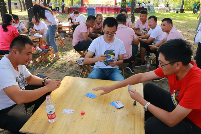 下午3時,一場“地王杯”撲克牌斗地主比賽作為晚會的預(yù)熱活動激烈開戰(zhàn),上百名員工參與其中。在比賽過程中,有水果和甜點相伴,笑聲和交流聲此起彼伏。經(jīng)過四輪近兩個小時的激烈角逐,共產(chǎn)生兩位“牌王”,泰盛恒地產(chǎn)總經(jīng)理黃佑忠為兩位獲獎選手現(xiàn)場頒發(fā)了獎品。