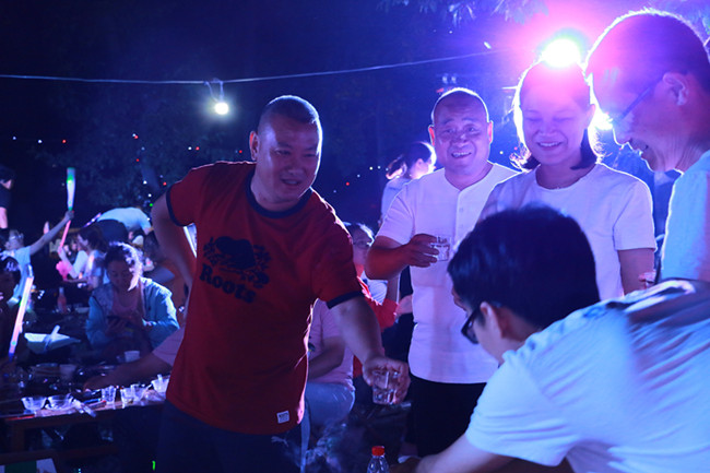 晚會現(xiàn)場篝火隨風(fēng)燃動,節(jié)目精彩紛呈,美食種類豐富,大家一邊欣賞精彩的歌舞表演,一邊品位美食美酒、熱情交流、把酒言歡。值得一提的是,所有節(jié)目均由員工在最短的時間內(nèi)自發(fā)組織和彩排,食物是李官農(nóng)場自養(yǎng)自產(chǎn)的綠色食材烹飪而成,酒水涵蓋茅臺酒、啤酒和雞尾酒多個種類,甜點和水果種類豐富,味道精美。節(jié)目中間還穿插了六輪抽獎環(huán)節(jié),獎品異常豐厚,有一半的員工贏得了獎品。