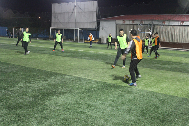當晚,雖然冷風起舞,但也抵擋不住大家的足球熱情,美輪美奐的臨沂電視塔下兵峰訓練基地人聲鼎沸,熱火朝天。按照賽程規(guī)則,北城一隊和三隊、北城二隊和四隊分別捉對廝殺,上演精彩對攻大戲,爭奪最后的冠軍。而拉拉隊員們也激情滿懷的的支持各自的球隊,加油聲此起彼伏,聲勢驚人。