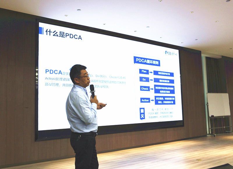 鞏總開(kāi)場(chǎng)以“小青蛙跳水”游戲的方式活躍氣氛,通過(guò)提問(wèn)復(fù)習(xí)了之前學(xué)習(xí)的PDCA管理方法的知識(shí)。緊接著介紹了QC小組的概況,并按照QC小組的工作步驟,要求各小組找出主題目標(biāo),內(nèi)部討論存在的問(wèn)題,并通過(guò)分析和點(diǎn)評(píng)各小組的案例引導(dǎo)與會(huì)各組逐漸掌握以PDCA的思維去對(duì)一個(gè)問(wèn)題事件展開(kāi)分析、找到改善辦法。