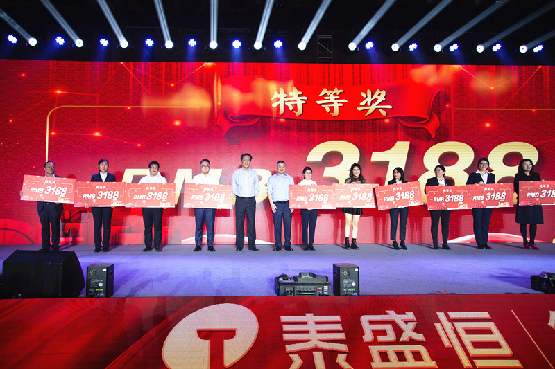 本場晚會共分為四個篇章,依次呈現(xiàn)了泰盛恒地產(chǎn)對初心的堅守、對奮斗的泰盛恒人的感恩、對美好未來的向往和對偉大夢想的執(zhí)著堅守。動聽的歌曲、曼妙的舞蹈、爆笑的小品、才華橫溢的三句半……晚會節(jié)目精彩紛呈,可謂是一場視覺與聽覺的饕餮盛宴。特別是穿插其間的“幸運大抽獎”活動,更是點燃了晚會現(xiàn)場的全部熱情。