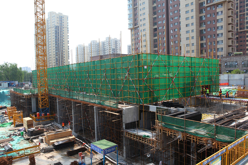 因新冠病毒疫情影響,項目前期施工進度受到一定阻滯。為了追趕工期,保障后續(xù)節(jié)點計劃的按時完成,復(fù)工后,施工方迅速調(diào)整施工計劃,馬力全開。由于金泰·舒格蘭24#樓負(fù)一層層高較高,涉及高大模板支撐問題,板總荷載、梁線荷載超出一定范圍,施工要求高、難度大;再加上場地條件受限,工程用料供應(yīng)勉力維持,給項目建設(shè)進度帶來較大考驗。
