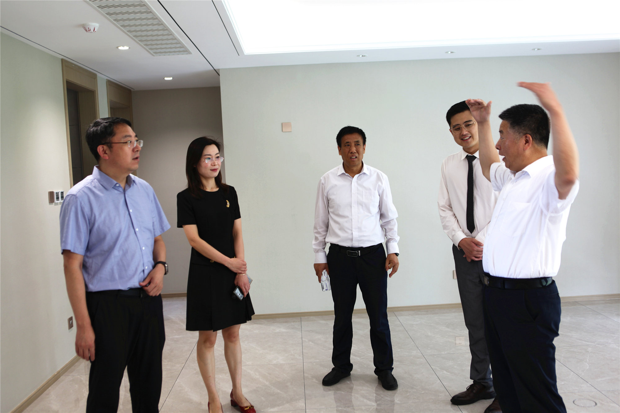 6月29日下午,山東省住房和城鄉(xiāng)建設(shè)廳二級巡視員都昌林、房地產(chǎn)管理處副處長李曉、臨沂市住建局城鄉(xiāng)建設(shè)服務(wù)中心主任孟慶民一行蒞臨金泰錦府參觀指導(dǎo),公司有關(guān)領(lǐng)導(dǎo)全程陪同。